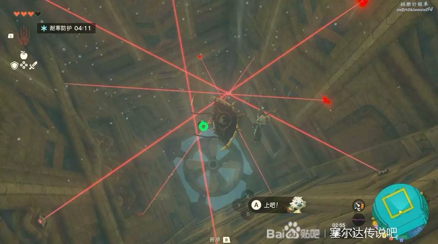 過來以後打開頂蓋上的門,從這裡下去,但是下去的時候要注意躲避鐳射。