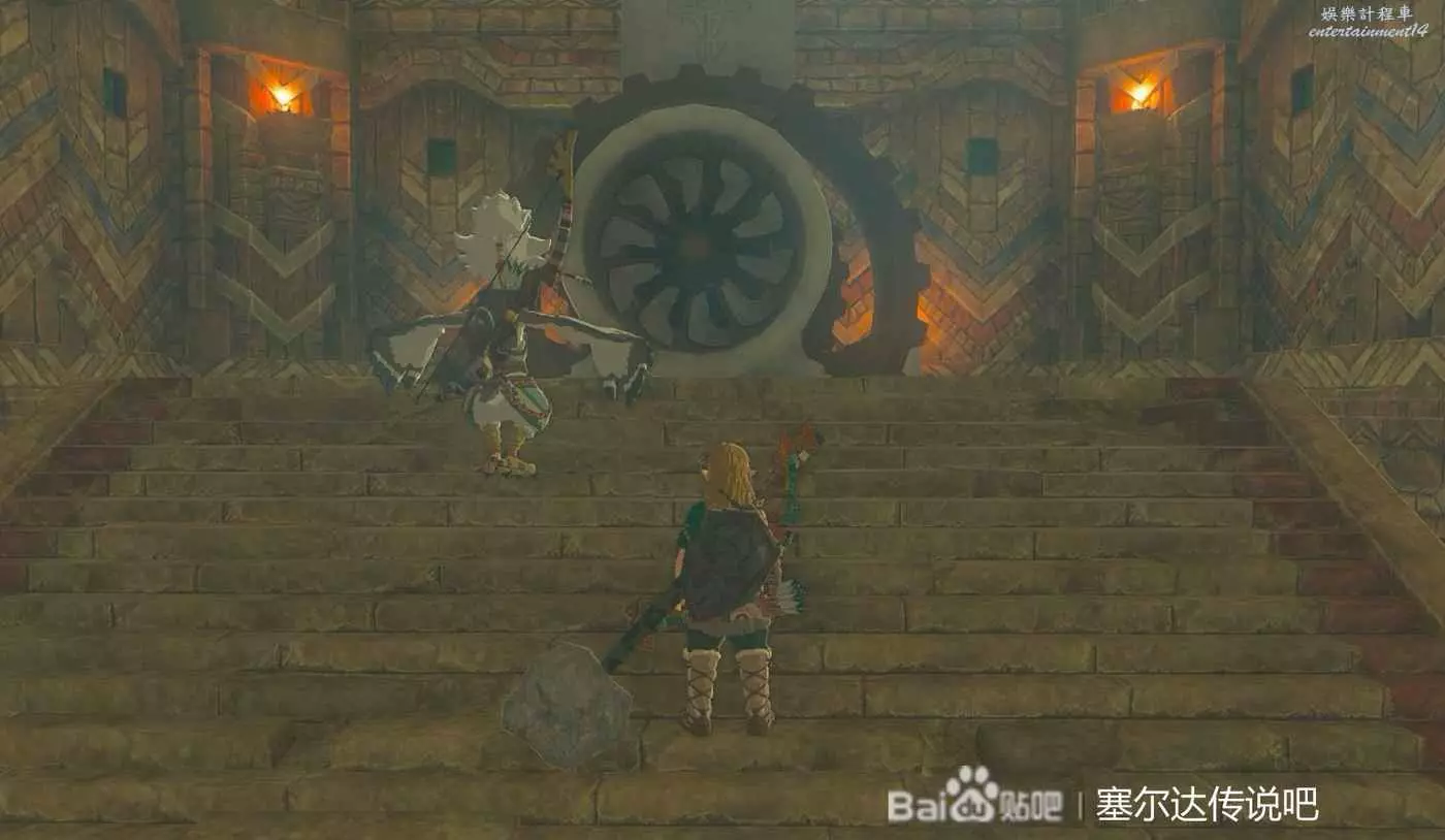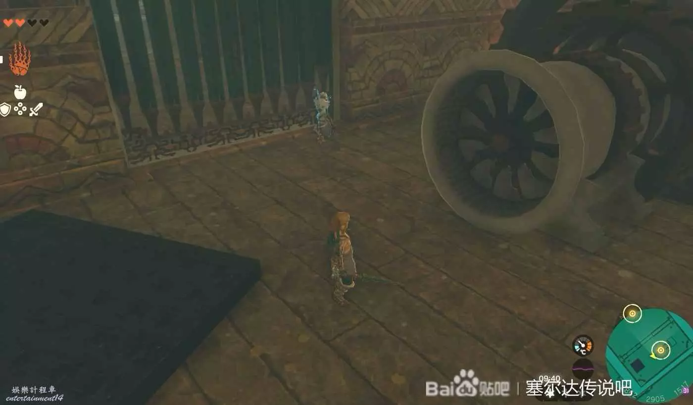 找塊石板粘在齒輪上面利用吹風技能轉動齒輪,旁邊的門就能打開了,之後通過旁邊的門上去就是第四個鎖了。