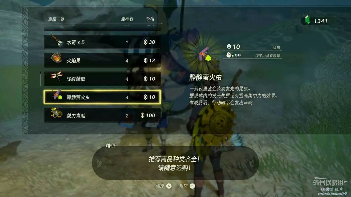 在特裡處可以化費盧比購買靜靜螢火蟲,數量不固定,可以多轉幾個驛站看看。