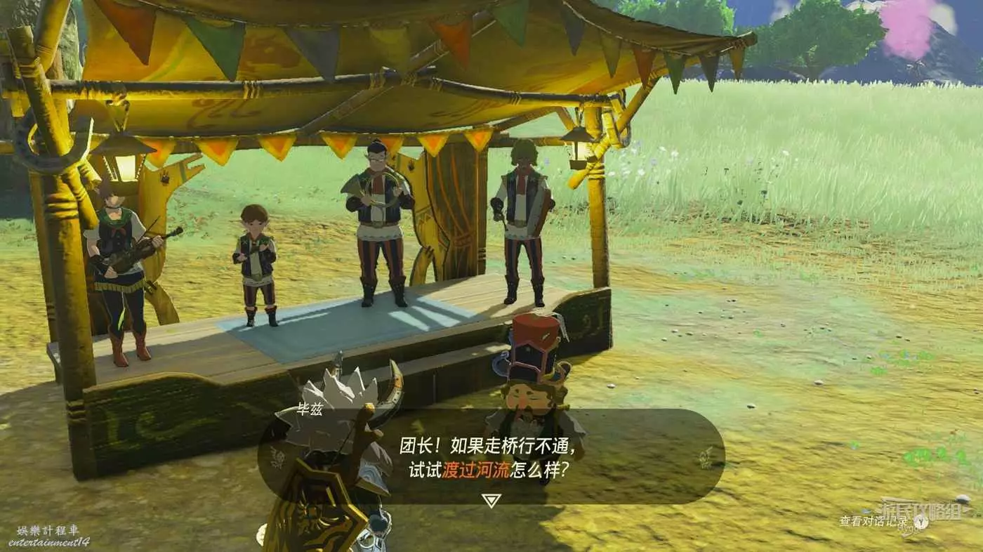 與驛站旁的樂團成員交談得知需要幫助他們渡河。