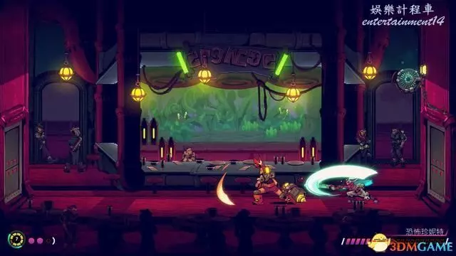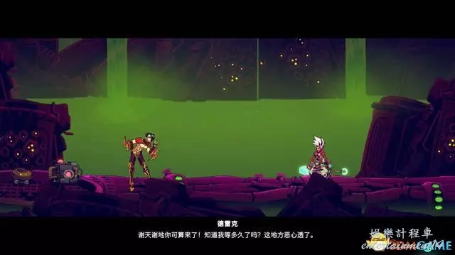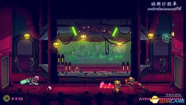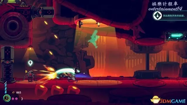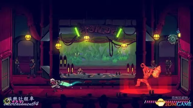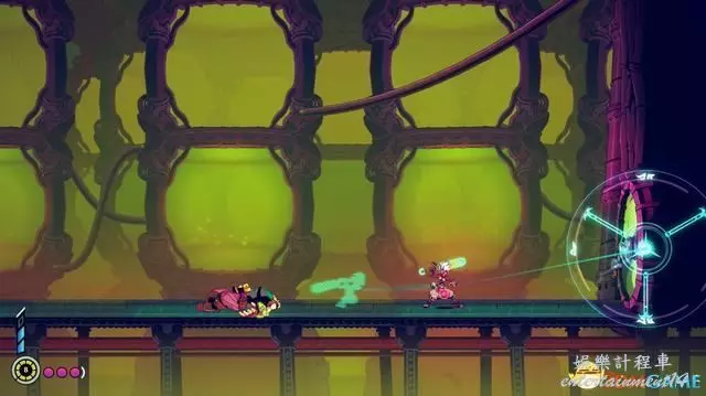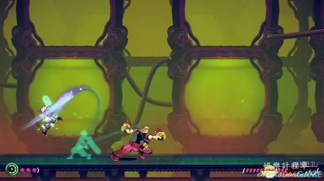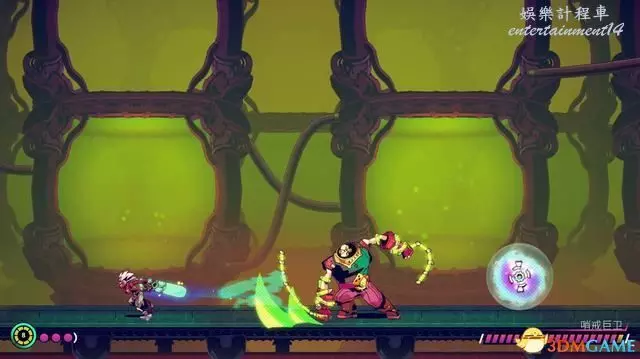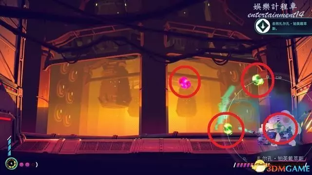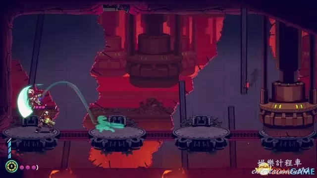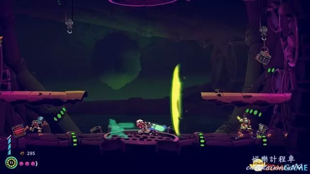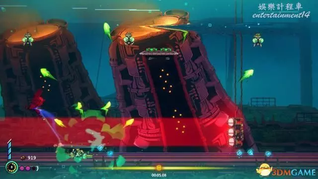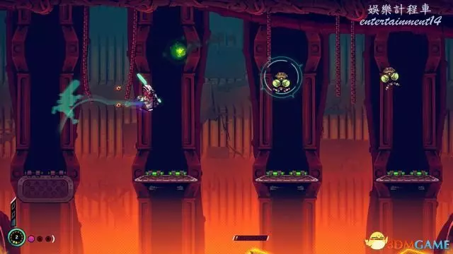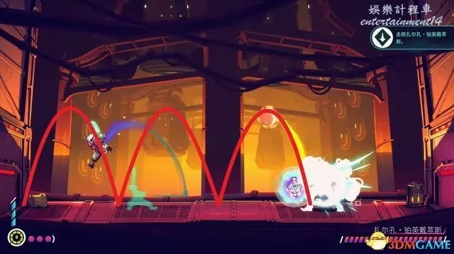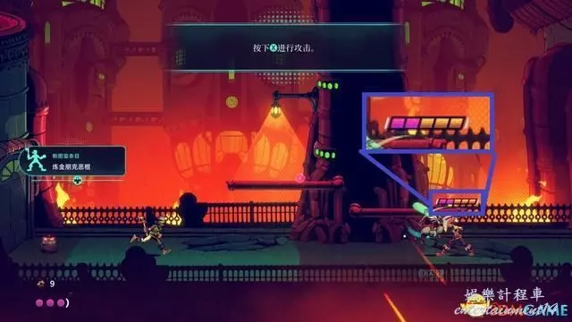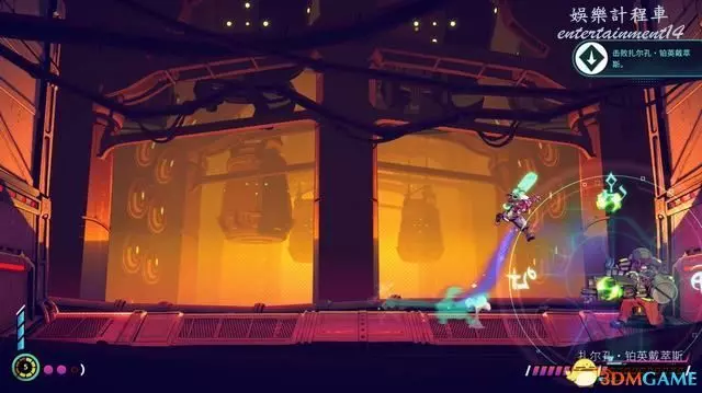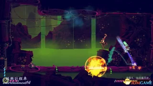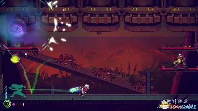 第一戰,利用跳板回避綠色火焰,多用減速快速清理敵人。