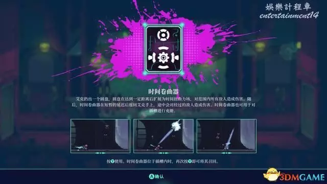 完成戰鬥後解鎖技能“時間捲曲器”,可以朝指定方向投射圓盤。