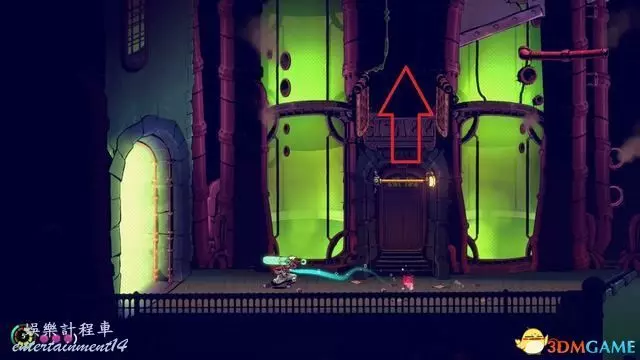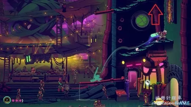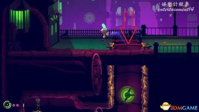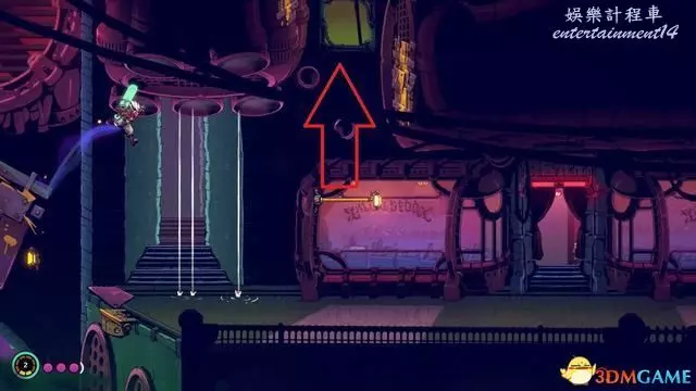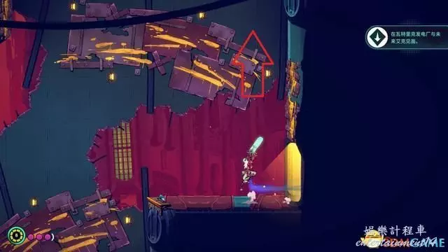 經由下圖位置上方的風扇抵達,向下進入戰鬥挑戰區域,需要先取得技能“交錯”。