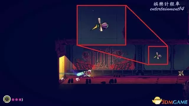 第三戰,多利用牆面擋住另一側的火箭彈,彈幕較密時可以到下方暫緩。