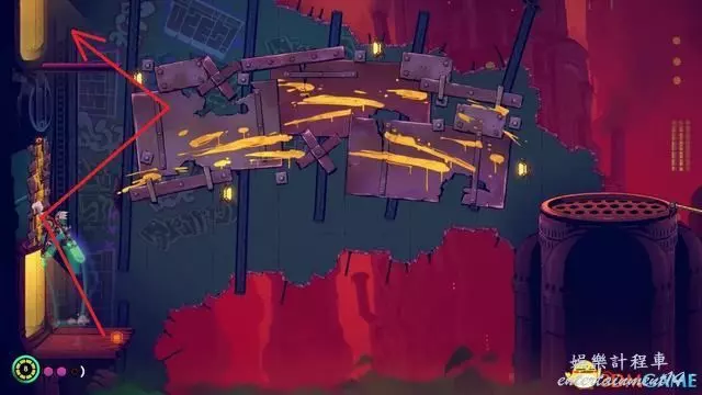 下圖位置,觸發蹬牆跑後立即往左上方跳。