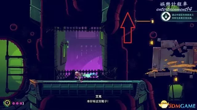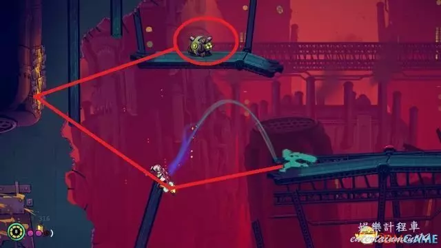 利用滑行鉤時,可以上下調整艾克的位置以躲避障礙物。