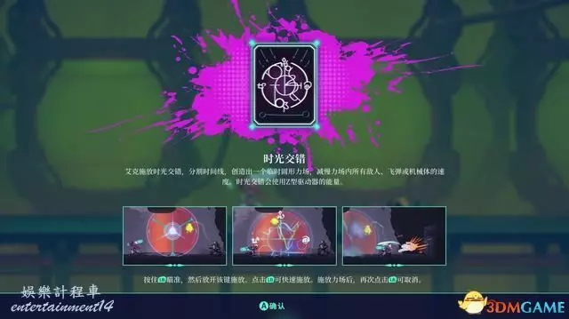 完成戰鬥後解鎖“時光交錯”技能(後簡稱交錯),可以使範圍內的所有人物、場景等全部降速(甚至包括飛彈)。
