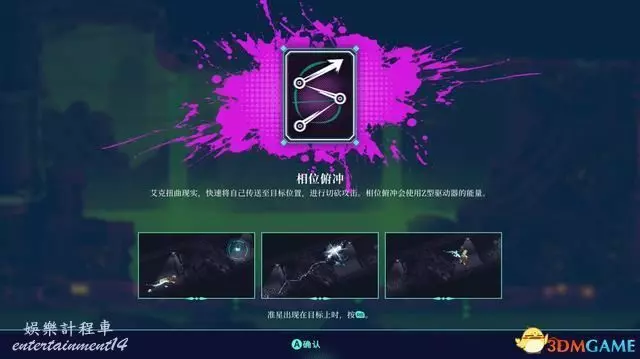 完成戰鬥後解鎖技能“相位俯衝”(後簡稱俯衝),可以利用俯衝瞬移至目標位置(對敵使用造成1點傷害)。