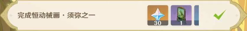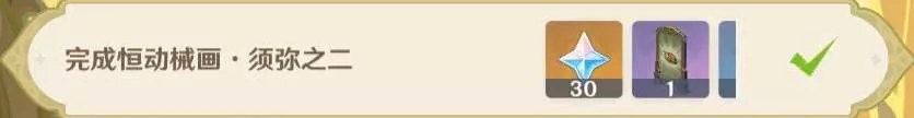 須彌之二:30原石+塵歌壺擺設x1+謐林涓露的鐵符x3+綠洲花園的恩惠x3+烈日威權的餘光x3