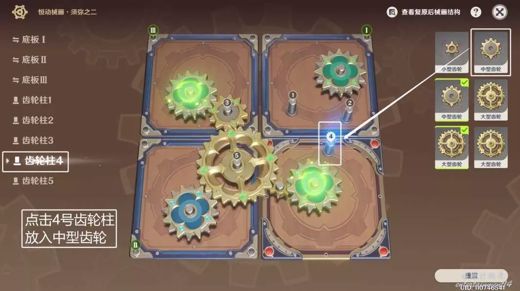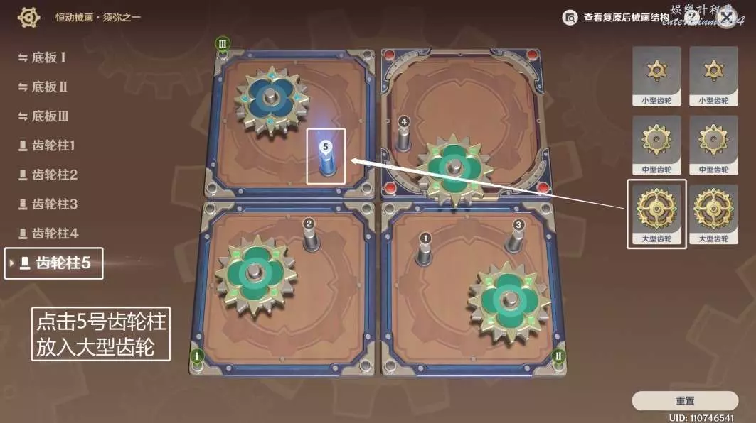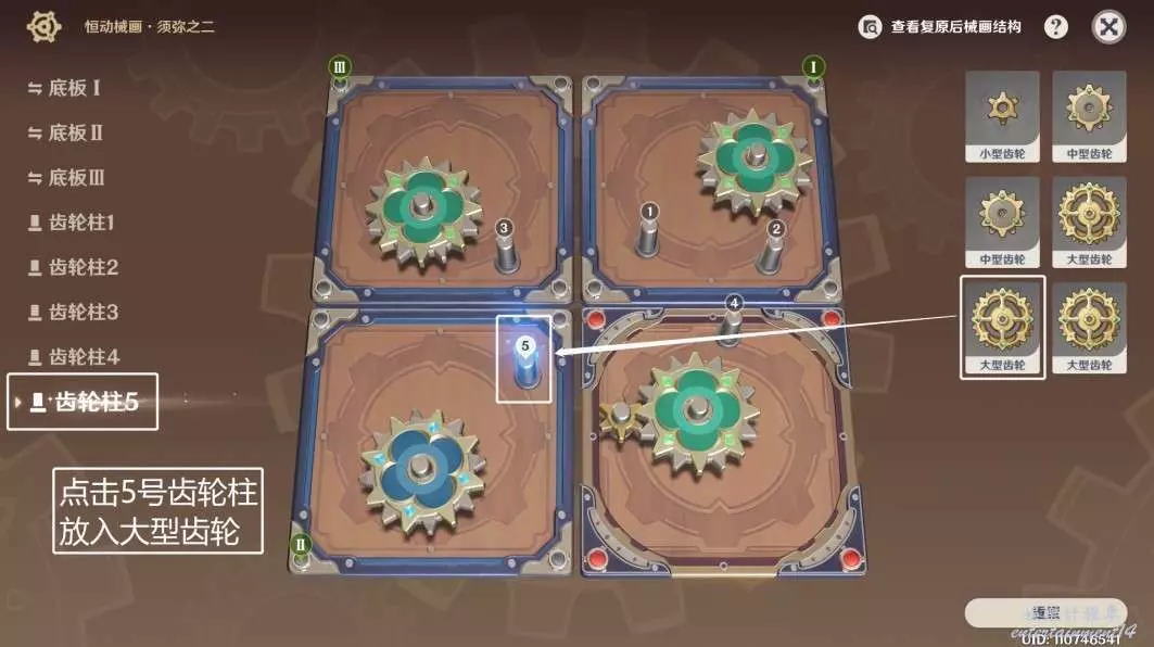 ◆ 第三步:點擊5號齒輪柱,放入大型齒輪。