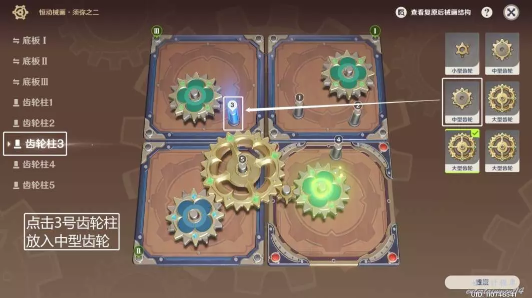 ◆ 第四步:點擊3號齒輪柱,放入中型齒輪。