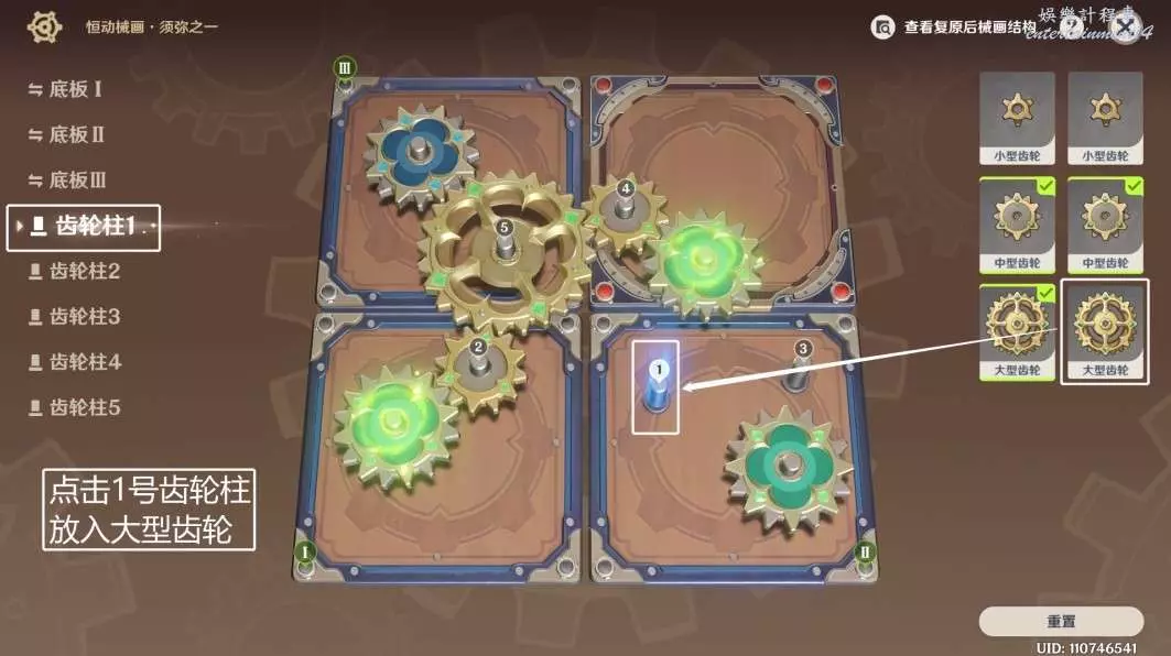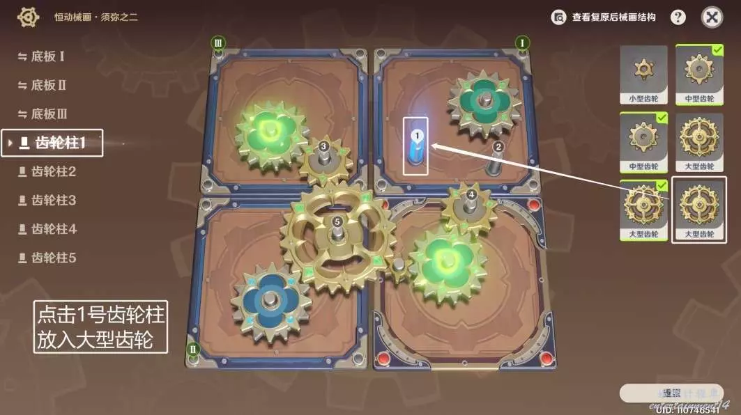 ◆ 第六步:點擊1號齒輪柱,放入大型齒輪。