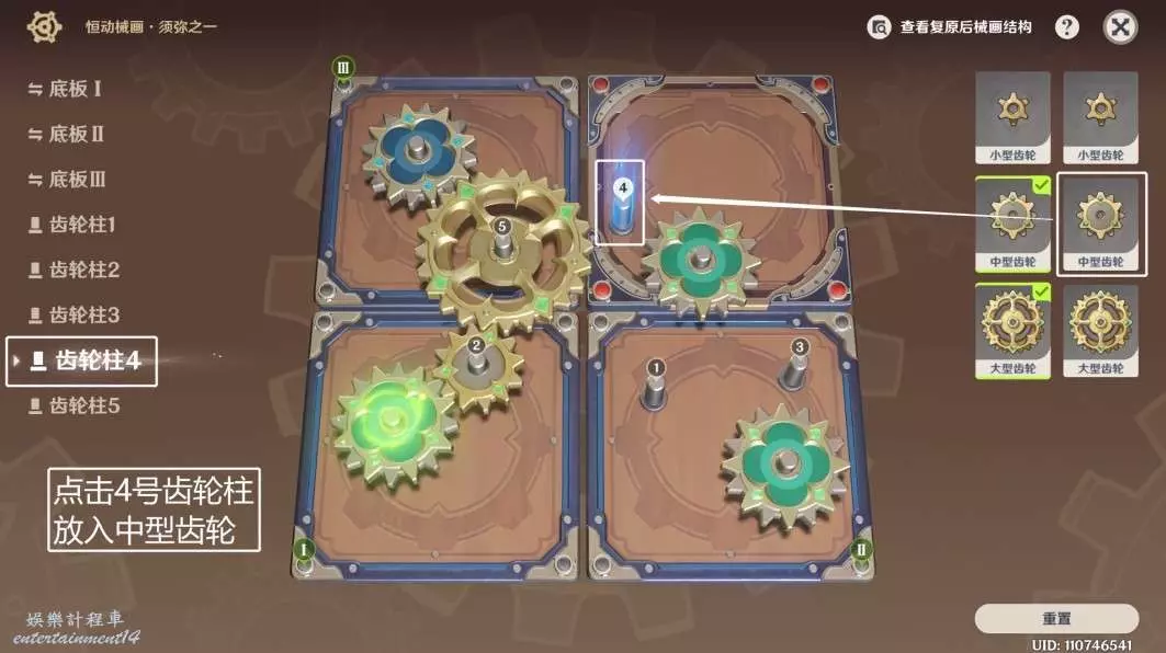 ◆ 第五步:點擊4號齒輪柱,放入中型齒輪。