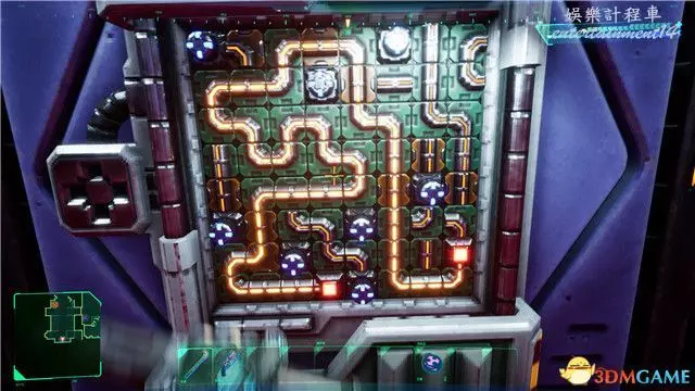 2. 解謎的基本思路是將有點的紅色閃爍方塊裡的電流引入到暗紅色失去電力的方塊裡;