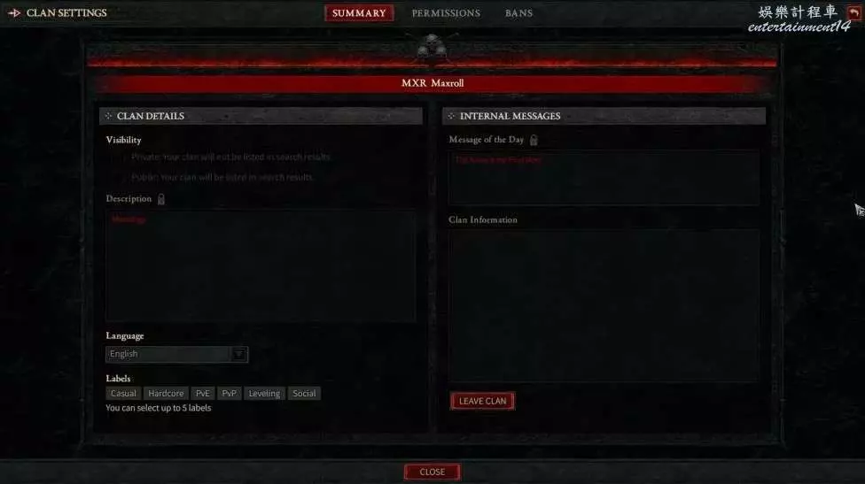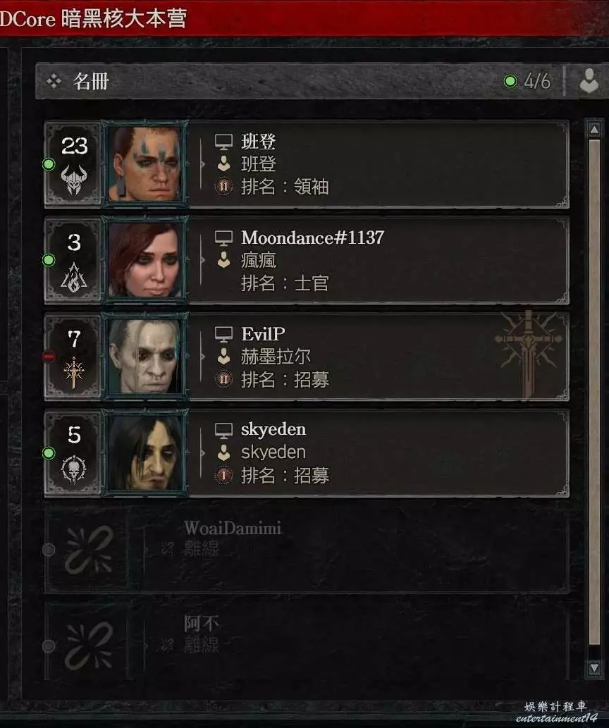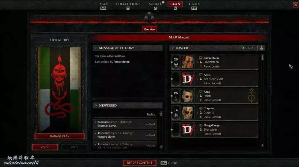 創建後可以進入社群的登陸頁面。 社群最多可以有 150 名成員,並且同一帳戶中的所有角色(包括硬核模式)都屬於同個社群。