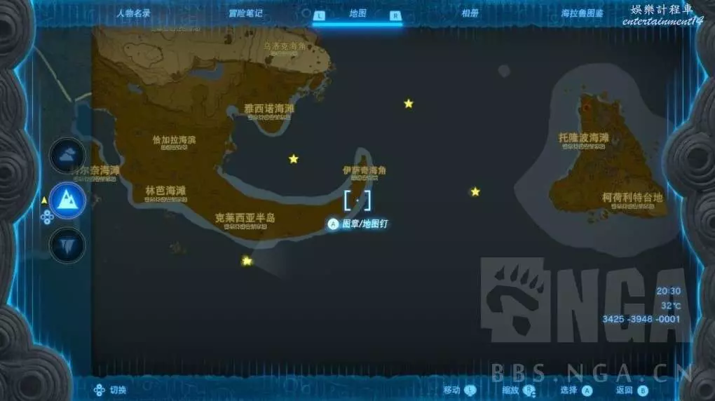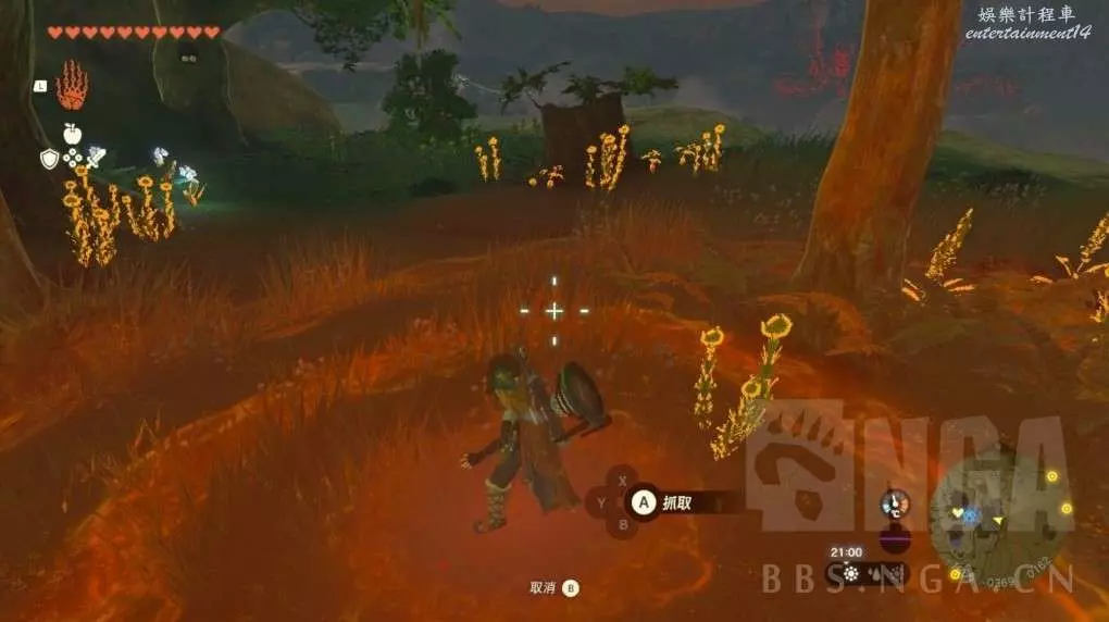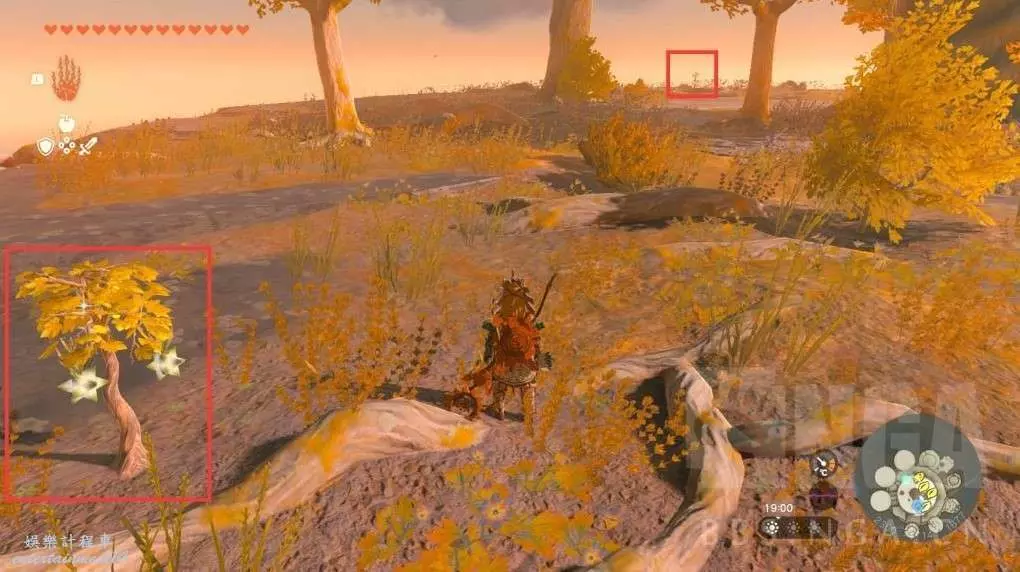 神廟外,下圖示星的位置一共能採集到30顆火焰果。