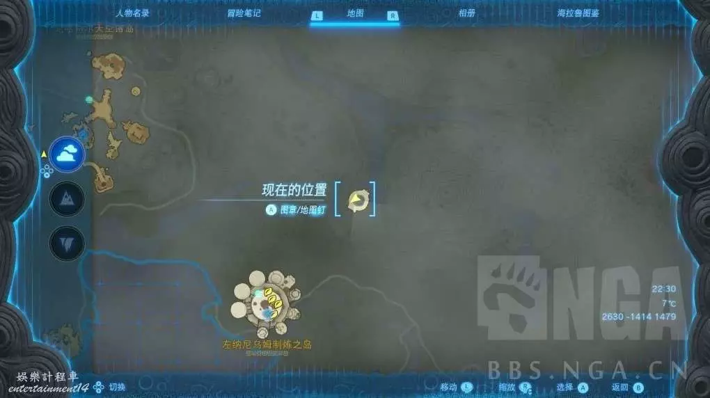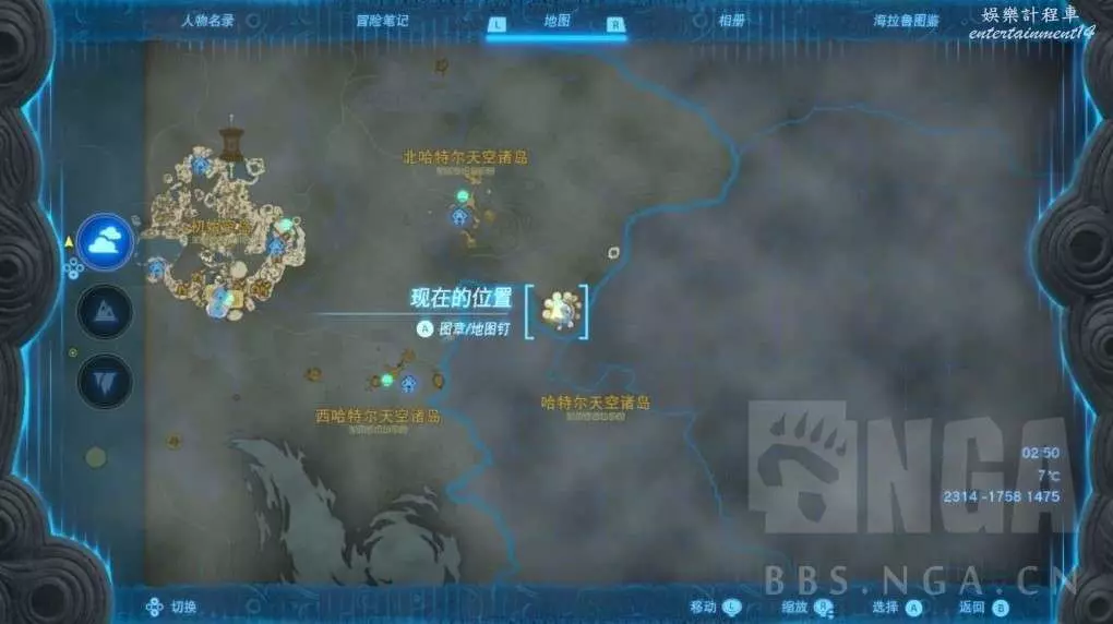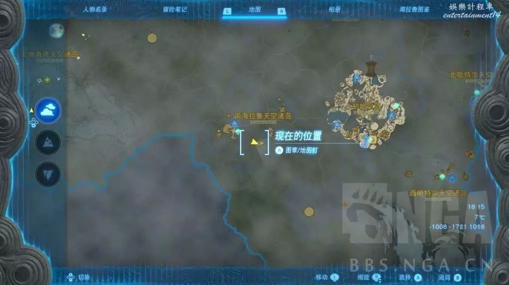 至於要怎麼上這個島,有兩種比較簡單的辦法。一種是這個島在往下漏水可以直接攀瀑。一種是用通天術穿到左納尼烏姆煉製之島頂層,然後滑翔下去。站在這個位置用通天術可以穿到頂層。
