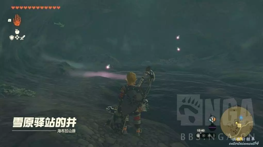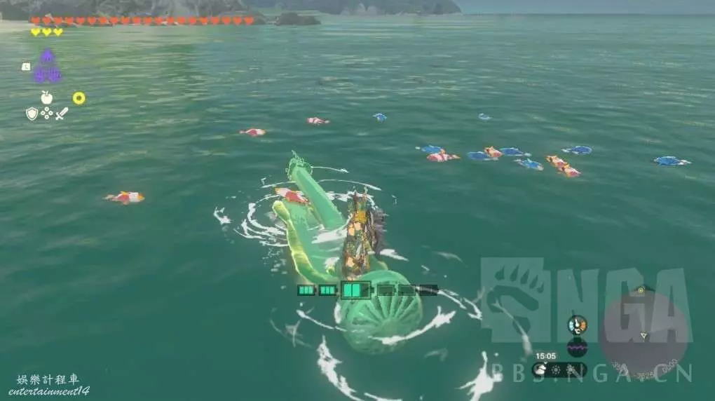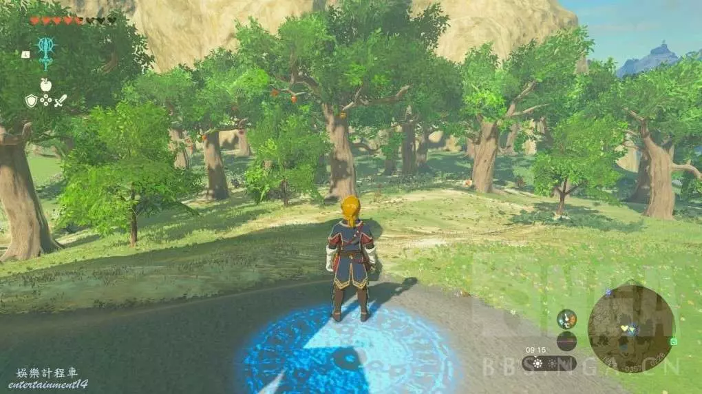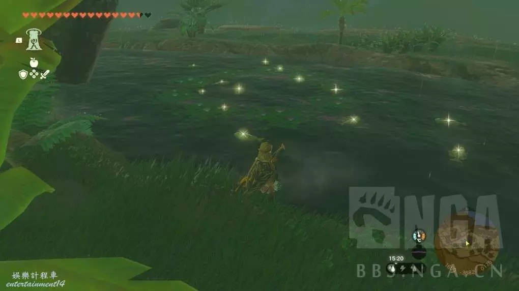 可以從旁邊的喬久烏烏神廟過來,水池邊有18顆大劍香蕉,水池裡有數條海拉魯鱸魚(可以扔一個電流果進去電魚)。