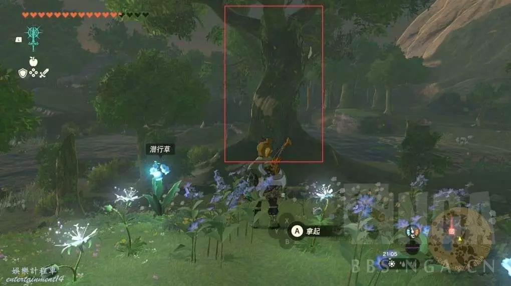 這個小島上有4只潛行田螺和3個速速蓮蓬。夜晚時田螺會發光,推薦晚上來拿。但是要上這個島似乎只有攀瀑這一個比較方便的方法。