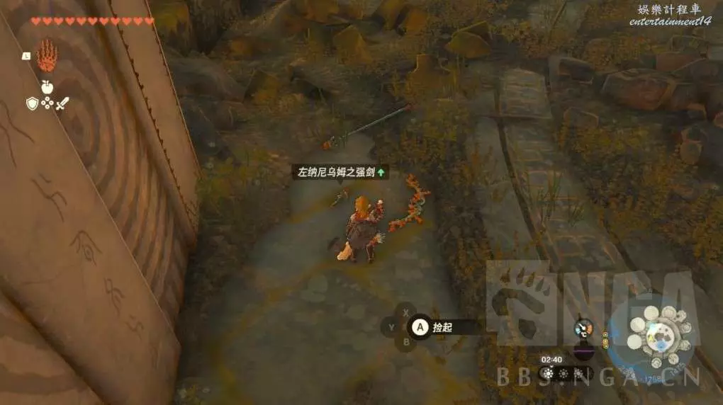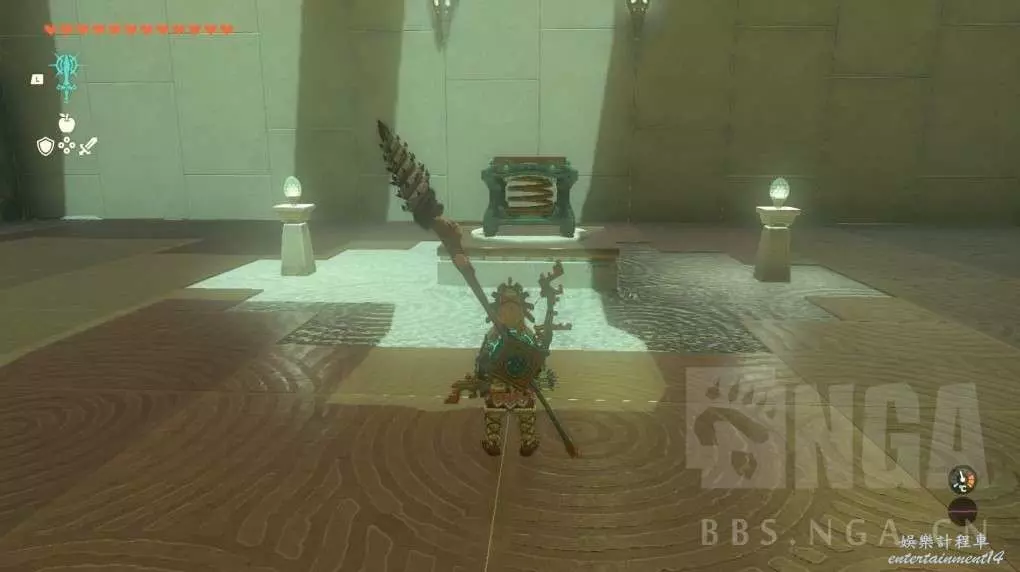 完成這座島的挑戰小遊戲後,神廟傳送點外可以撿到各式左納尼烏姆武器,包括左納尼烏姆長槍,劍,大劍,弓,盾,等。具體武器品級與隱藏分有關。