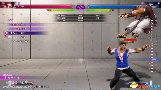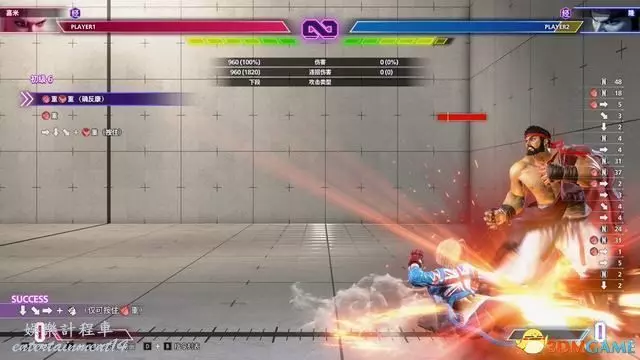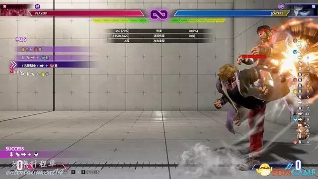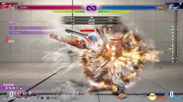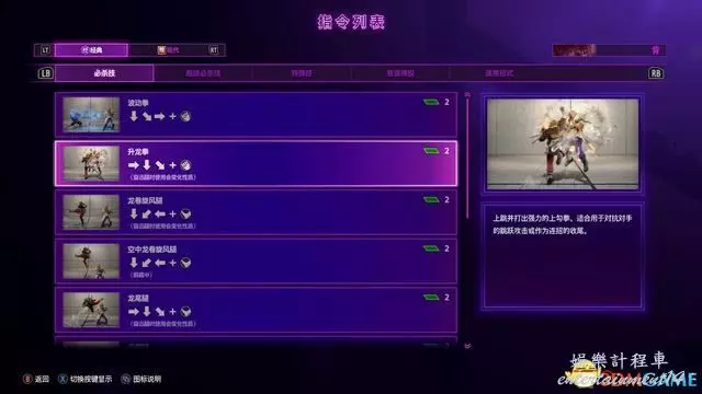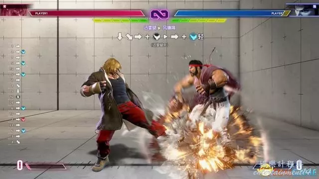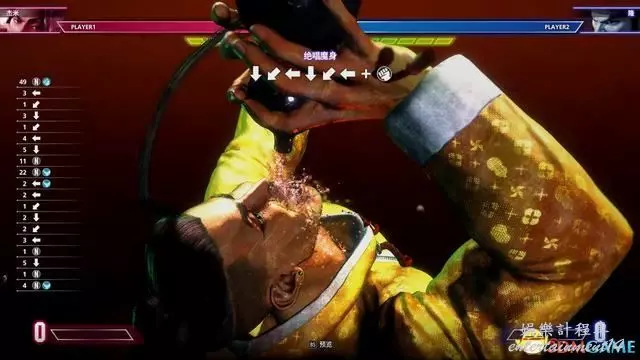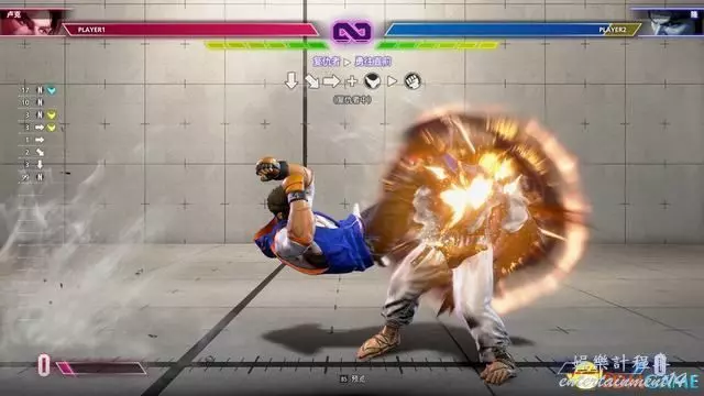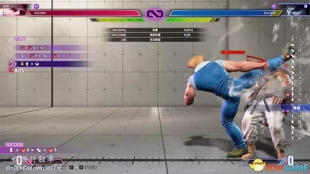 例如下圖的教程指引,按鍵指令為“站立重拳→下前拳”。