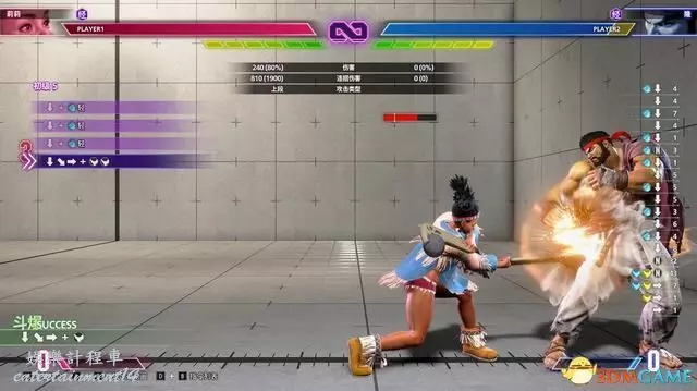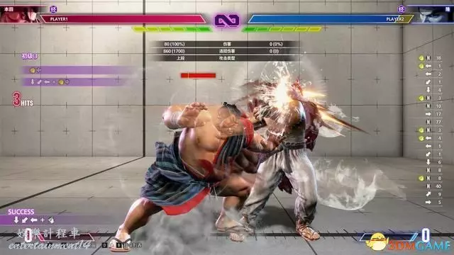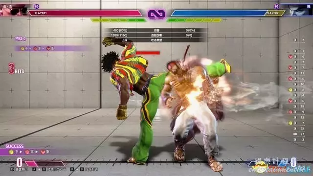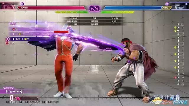 “輸入歷史顯示”則可以在螢幕右側看到已經輸入指令的歷史記錄,以此調整自己的輸入習慣(如搖杆的↓↘→容易輸入成↓↘→↗)。