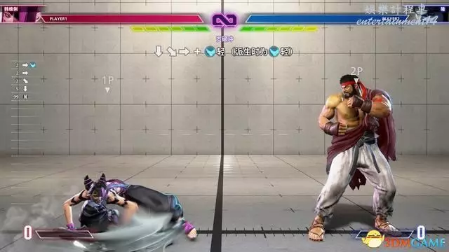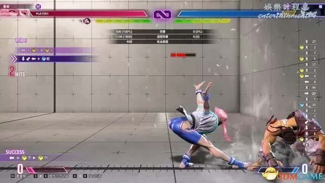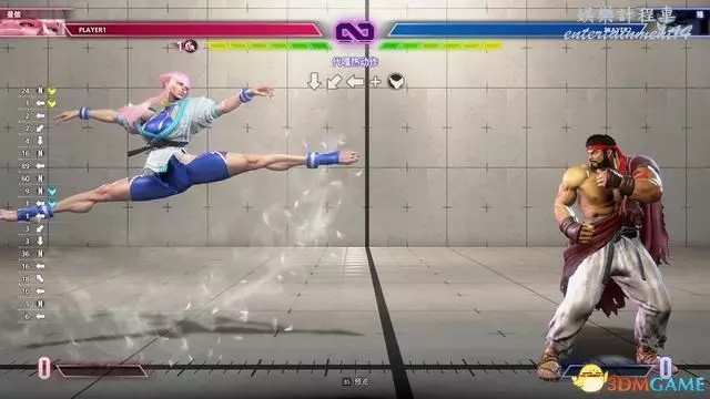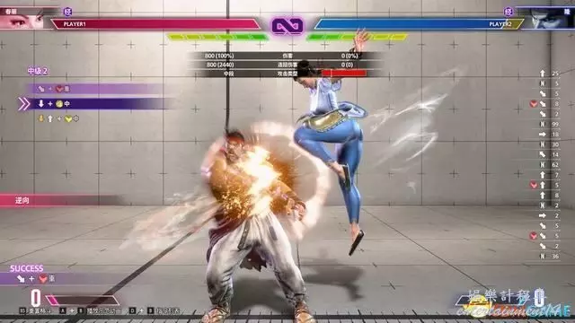 值得一提的是,春麗的LV2大招“↓↘→↓↘→腿”能在攻擊完成後立即使用跳躍取消,繼續銜接空中連段。