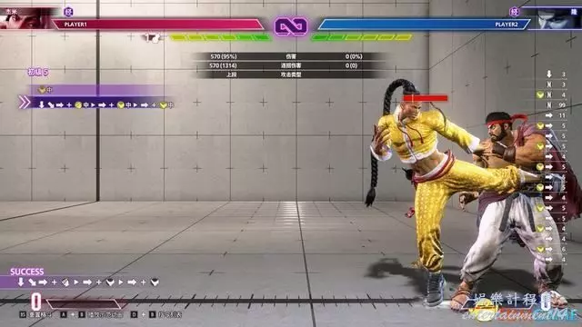 【備註】這類連招建議在訓練模式中打開輸入記錄,觀察自己輸入的按鍵順序。