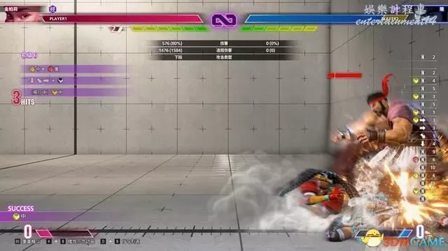 確反與版邊格擋也是同樣的操作,在命中後利用重攻擊銜接22HK,將對手帶到空中。