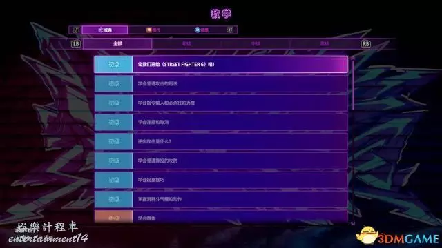 初級為各項動作的名詞記憶,有格鬥類遊戲經驗的玩家可以直接跳過。