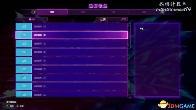 中級是部分短連段的練習,高級則是長連段與必殺技銜接的練習。