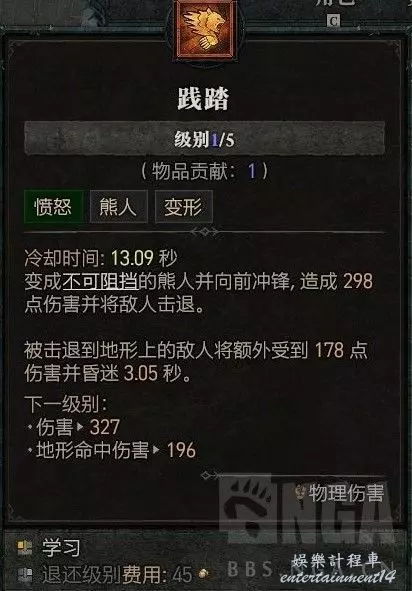 16級後可以學到目前唯一的主動位移技能,踐踏