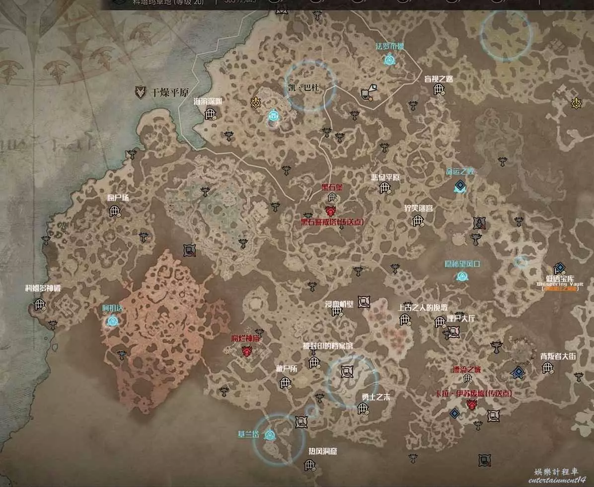 暗黑破壞神 4 (Diablo IV) 2-5章地圖傳送點、祭壇與威能副本位置標註