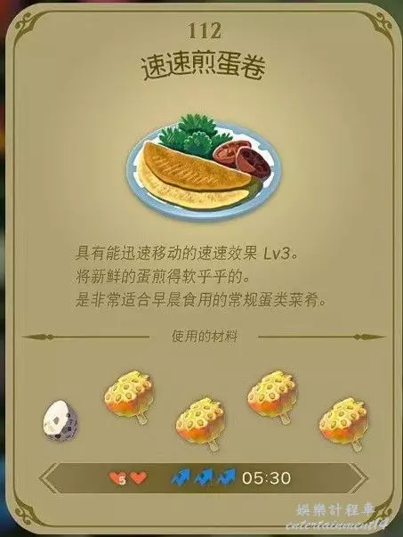 速速蓮蓬3個+速速蘿蔔1個+禽蛋1個=5分鐘的3級速度料理。