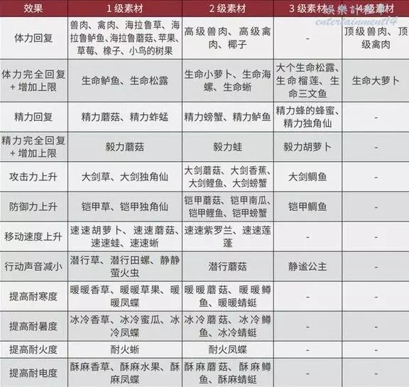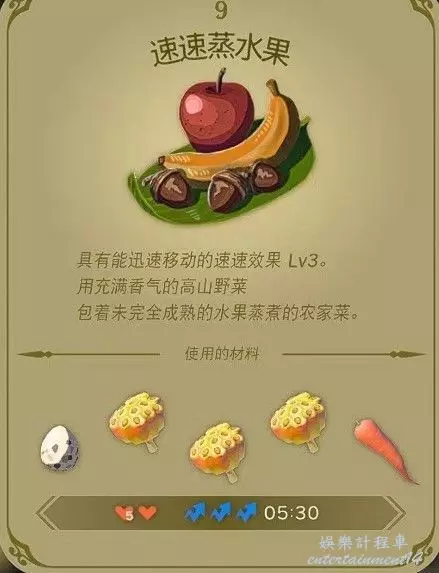 禽蛋這個前期也比較缺,但是可以用任何輔食(海拉魯米、小麥、鮮奶等)替換,時間只少30秒而已。