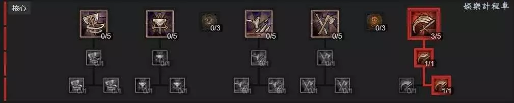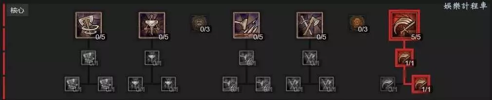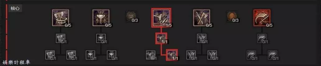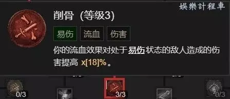 3、死亡重擊初拿到後,請立即點1點斷筋,讓流血敵人減速,讓我們可以吃到裝備上的對緩速敵人增傷的詞綴。