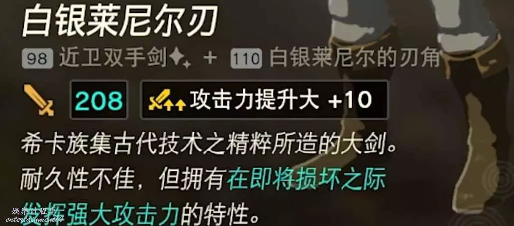 專業打人馬的武器,快損壞時攻擊力翻倍,so,直接上白銀萊尼爾的刃角,再利用耐久度剩1傷害翻倍的機制,耐久度剩1的時候,騎在馬背上輸出,因為馬背上不消耗耐久度。