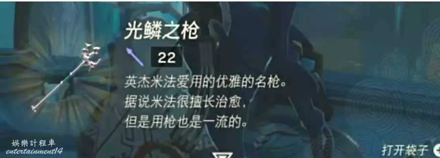 掃把沾屎,猶如呂布在世,光鱗之槍也一樣。可以上白銀萊尼爾的刃角用來打Boss,也可以搭配冰屬性的餘料來打小怪,缺點就是打之前先得沾水,不然就是“幹拖把”,沾水的辦法有很多,看自己喜歡。