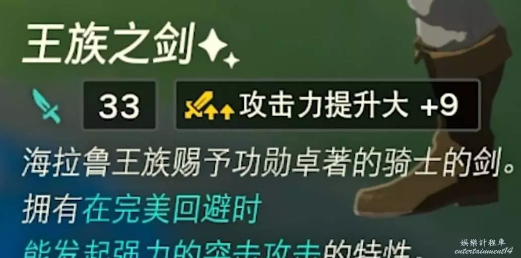 完美閃避時傷害double,專門用來打可以閃避的怪,打人馬直接配附加最高攻擊力的餘料,打小怪就附加冰屬性的餘料。王族之槍也可以,但王族單手劍更好,因為還有盾可以拿。