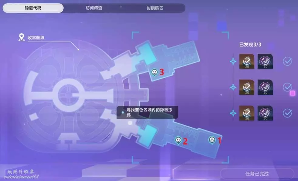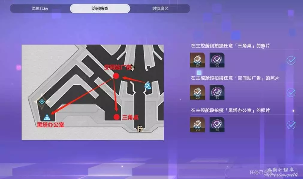 該玩法要求不高,找到任意的界域定錨、訂餐機器人和垃圾桶靠近拍照即可完成。這裡選取最靠近的一組點位供大家參考。
