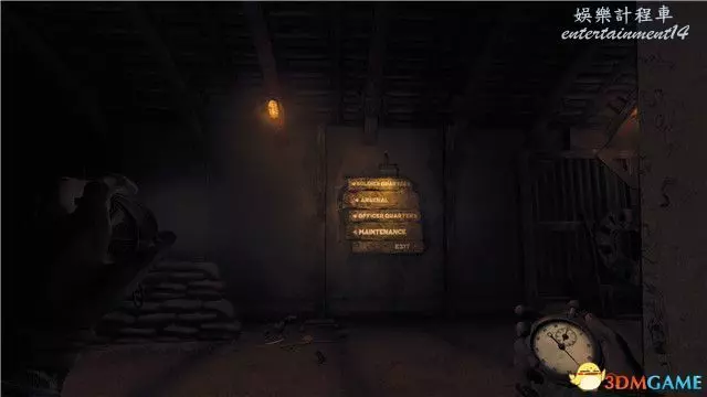 6. 在士兵區的士兵休息室直接找到隨機床鋪上的鑰匙,然後使休息間通電,最後打開聯絡房裡的無線電,獲取進入軍火庫的密碼