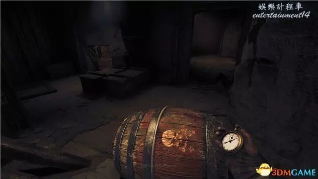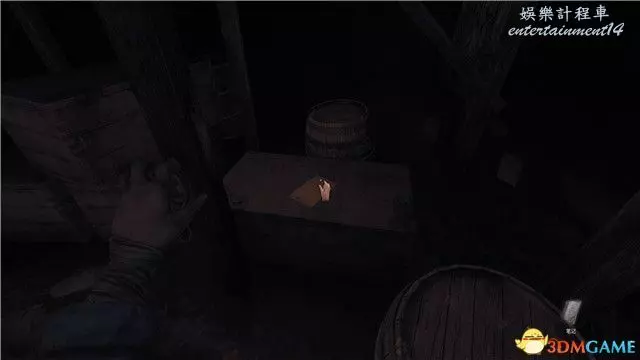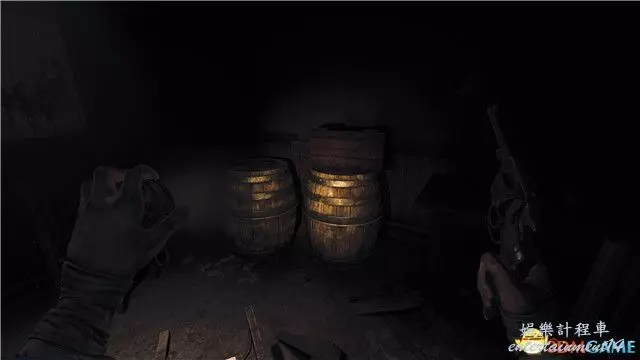 使用左輪手槍射擊木桶,清除道路障礙,繼續朝前走。
