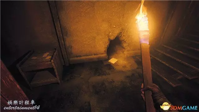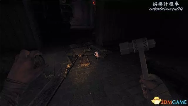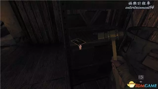 離開這個房間繼續朝前走,使用附近的磚塊砸開木門。