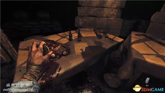 離開這個房間,沿著戰壕繼續朝前走,你將找到一個爆破的木桶。