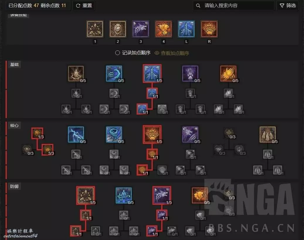 這套BD只使用了47點,剩餘11點,一方面是給大家更多自由選擇的餘地,一方面也考慮到在這個階段大家技能點可能還沒拿全。 我也還沒拿全…