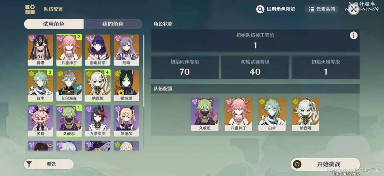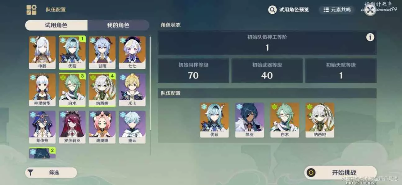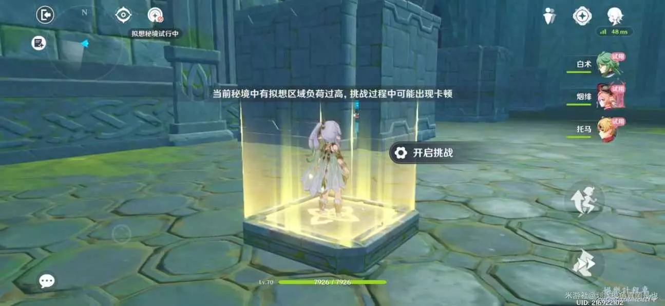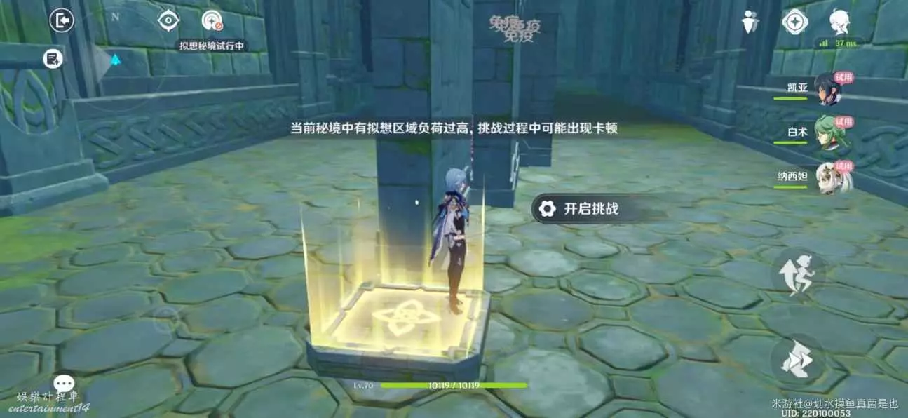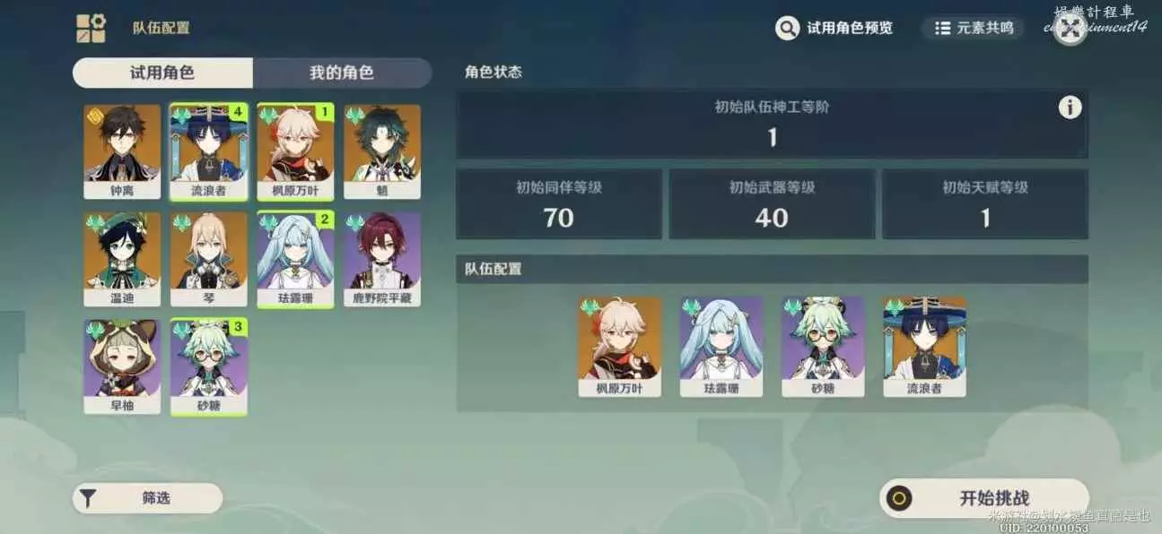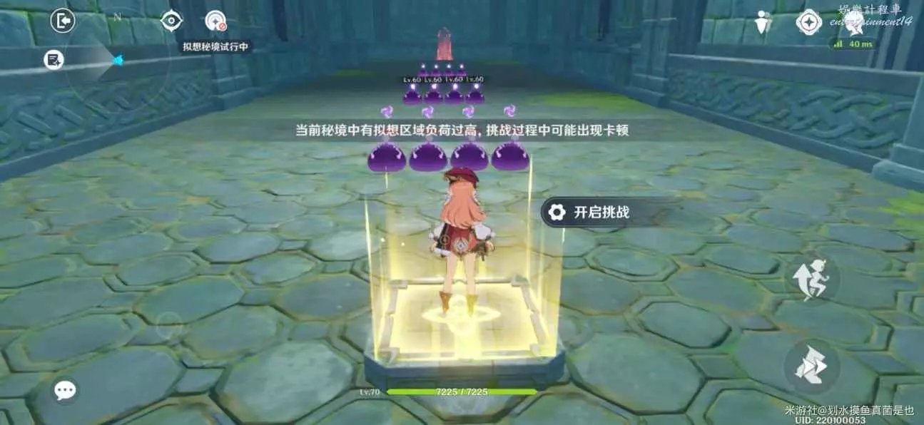 開始挑戰後優菈在牆邊短E保證同時打到四隻怪,切凱亞在可以看到史萊姆的牆角位置用E技能即可