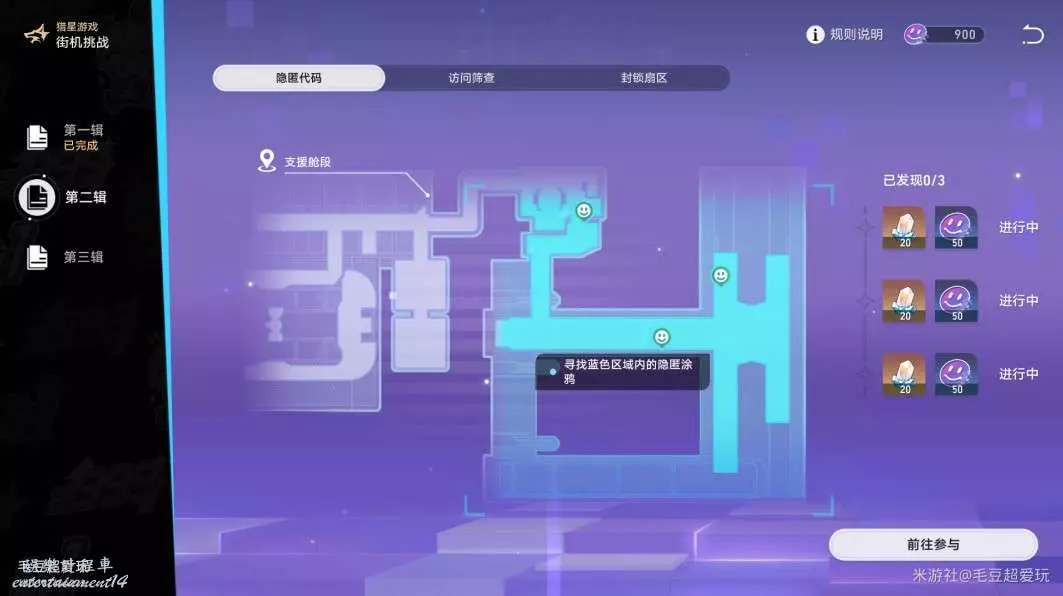 點「前往參與」可自動傳送到支援艙段,靠近塗鴉互動,再按“F”收集即可,具體位置看下圖。3個塗鴉,每個塗鴉20星瓊,獎勵共計60星瓊。