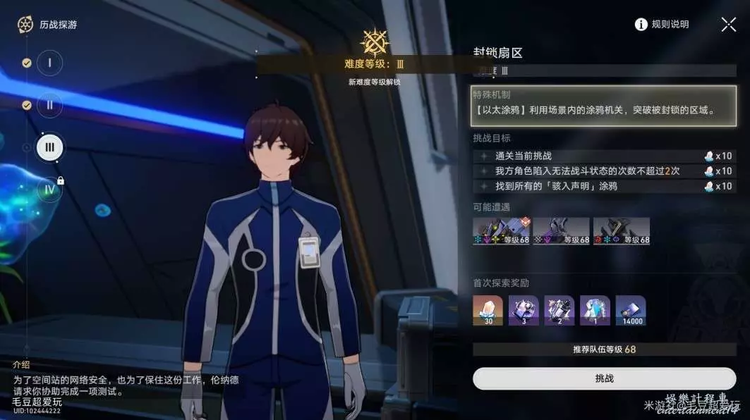 第二輯的活動為難度Ⅲ,點「前往參與」可自動傳送到「倫納德」旁邊,與他對話可開啟“秘境”,左側可以選擇難度,每關的獎勵都只能領取一次,不能重複領取。