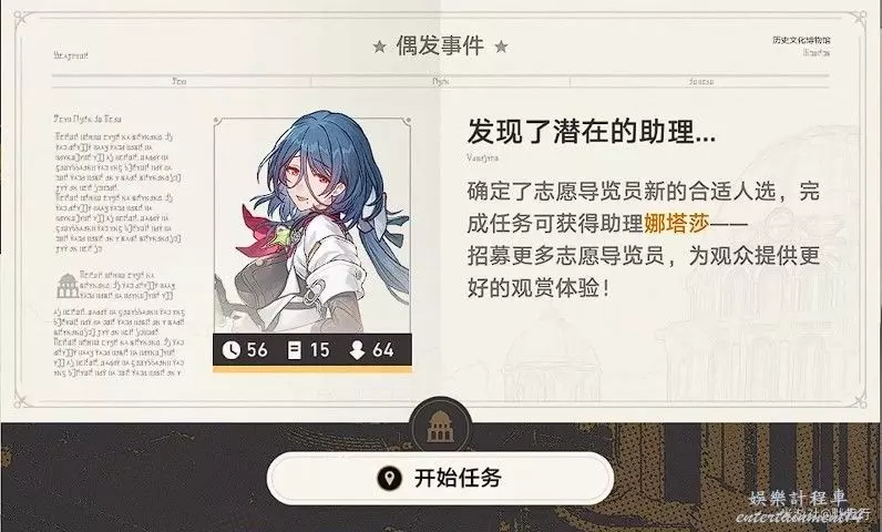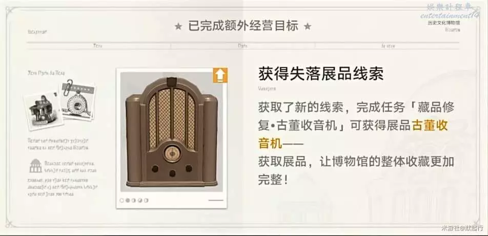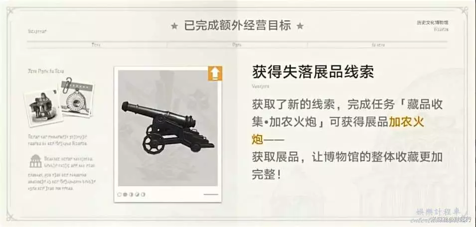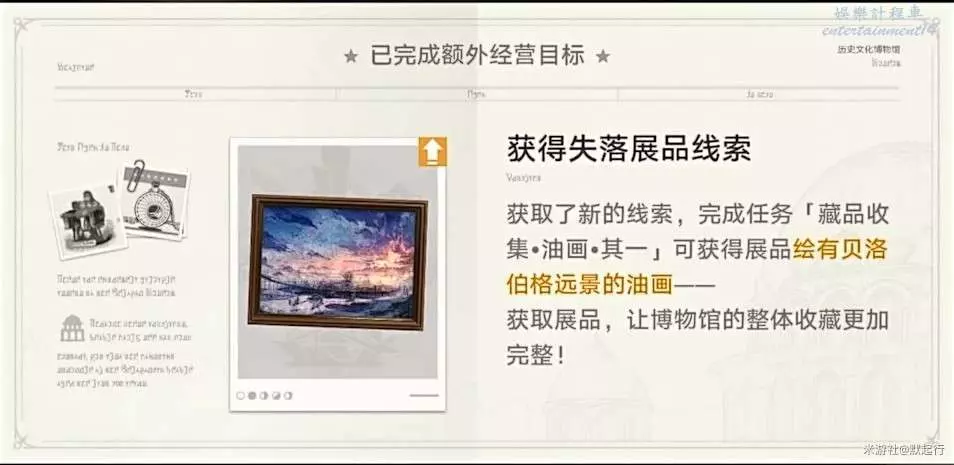 額外任務:完成經營目標可開啟任務。可開啟任務類型(1)藏品收集(2)人員招募