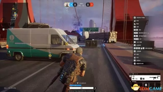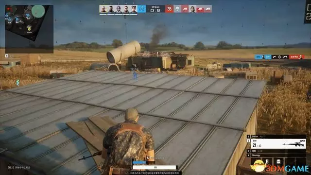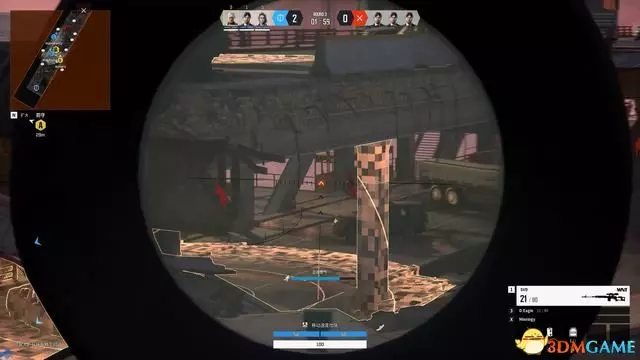 下圖為正在被敵方射擊的視角,完全看不到對手所在位置。